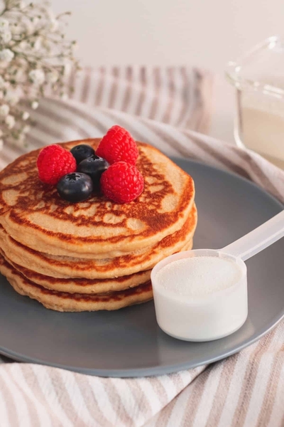 Nếu bạn có công thức làm bánh pancake yêu thích, chỉ cần thêm một hoặc hai muỗng bột protein vào bột bánh. Đây là một lựa chọn tuyệt vời cho những người muốn ăn bữa ăn và không phải là người hâm mộ sinh tố.