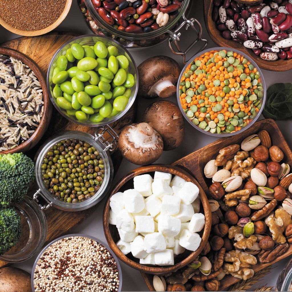Protein thực vật như đậu nành, đậu, đậu phụ, đậu Hà Lan, các loại hạt và hạt giống