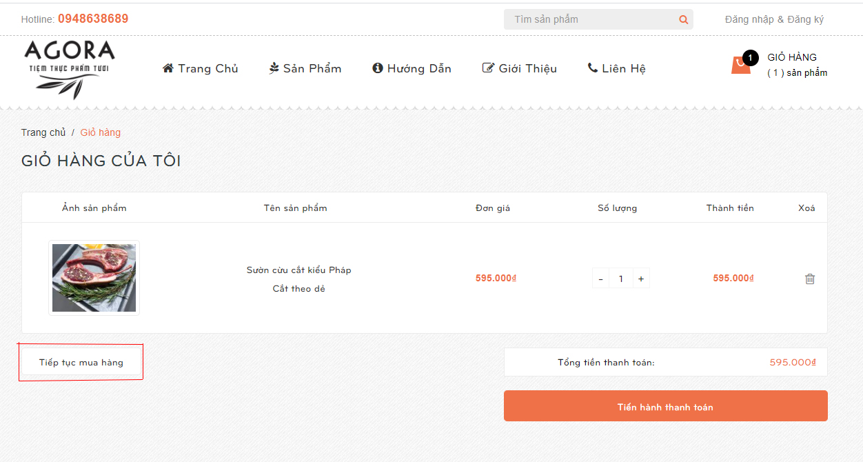 Nếu bạn muốn tiếp tục mua hàng: Bấm vào phần tiếp tục mua hàng để lựa chọn thêm sản phẩm vào giỏ hàng