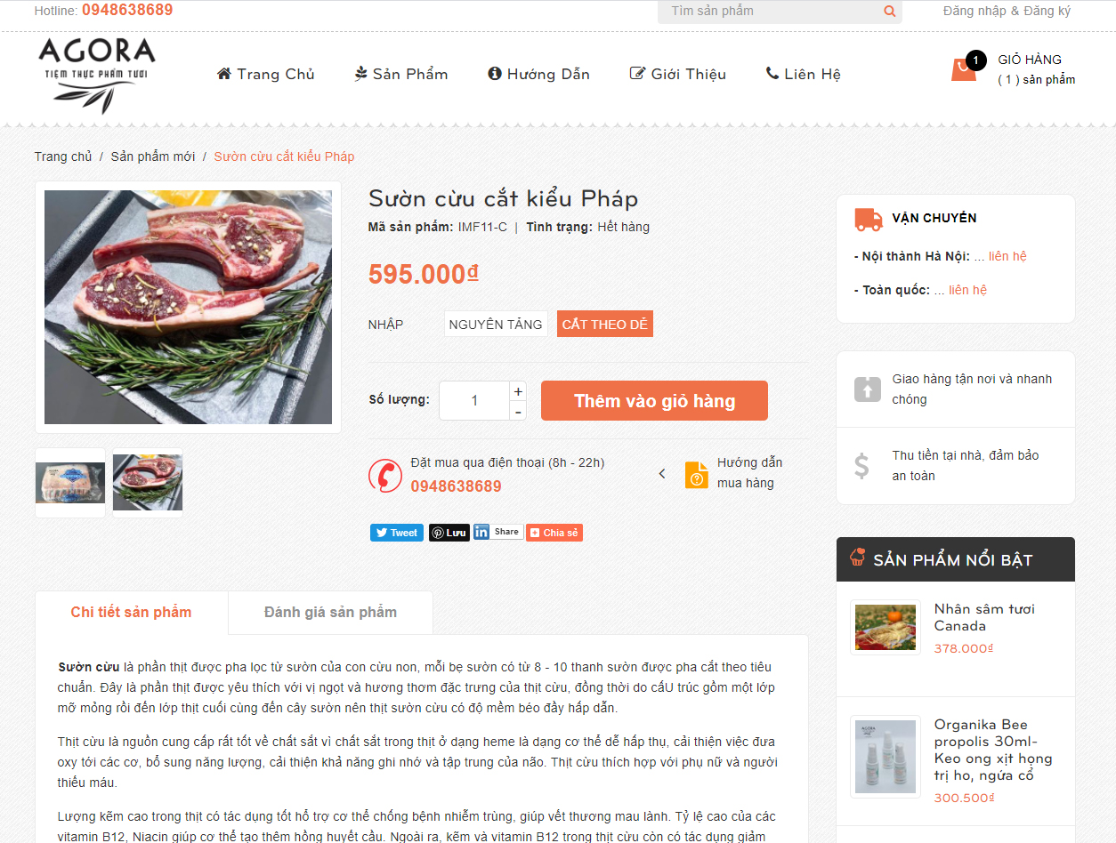 Bước 2: Click và sản phẩm muốn mua, màn hình hiển thị ra pop up với các lựa chọn sau